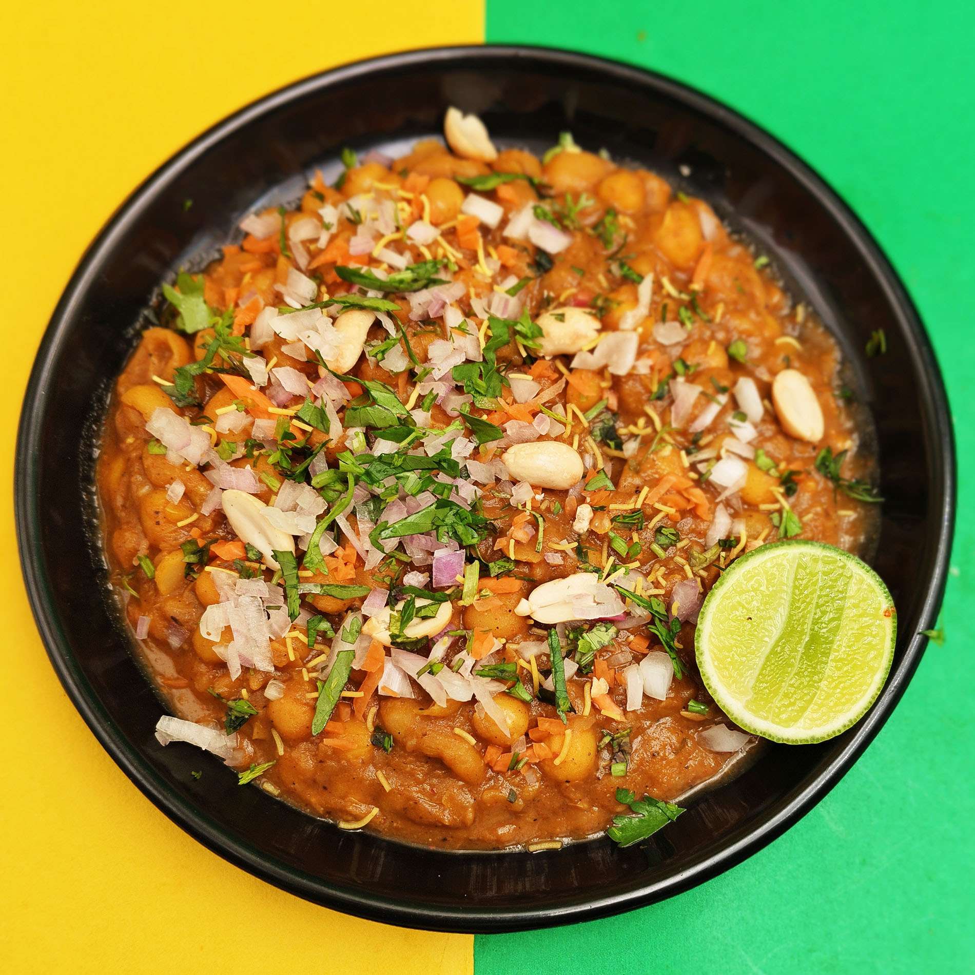 Spicy Chatpata Ghugni with tangy tamarind dips garnished with sweet Chutney, onion , Sev makes a perfect evening craving.