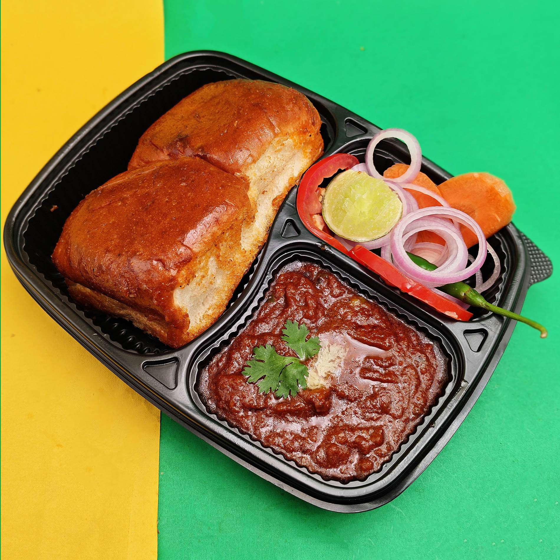 Savor the vibrant streets of Mumbai with every spicy bite of pav bhaji, a buttery delight bursting and bold flavors with spicy bhaji with goodness of veggies and soft pav.